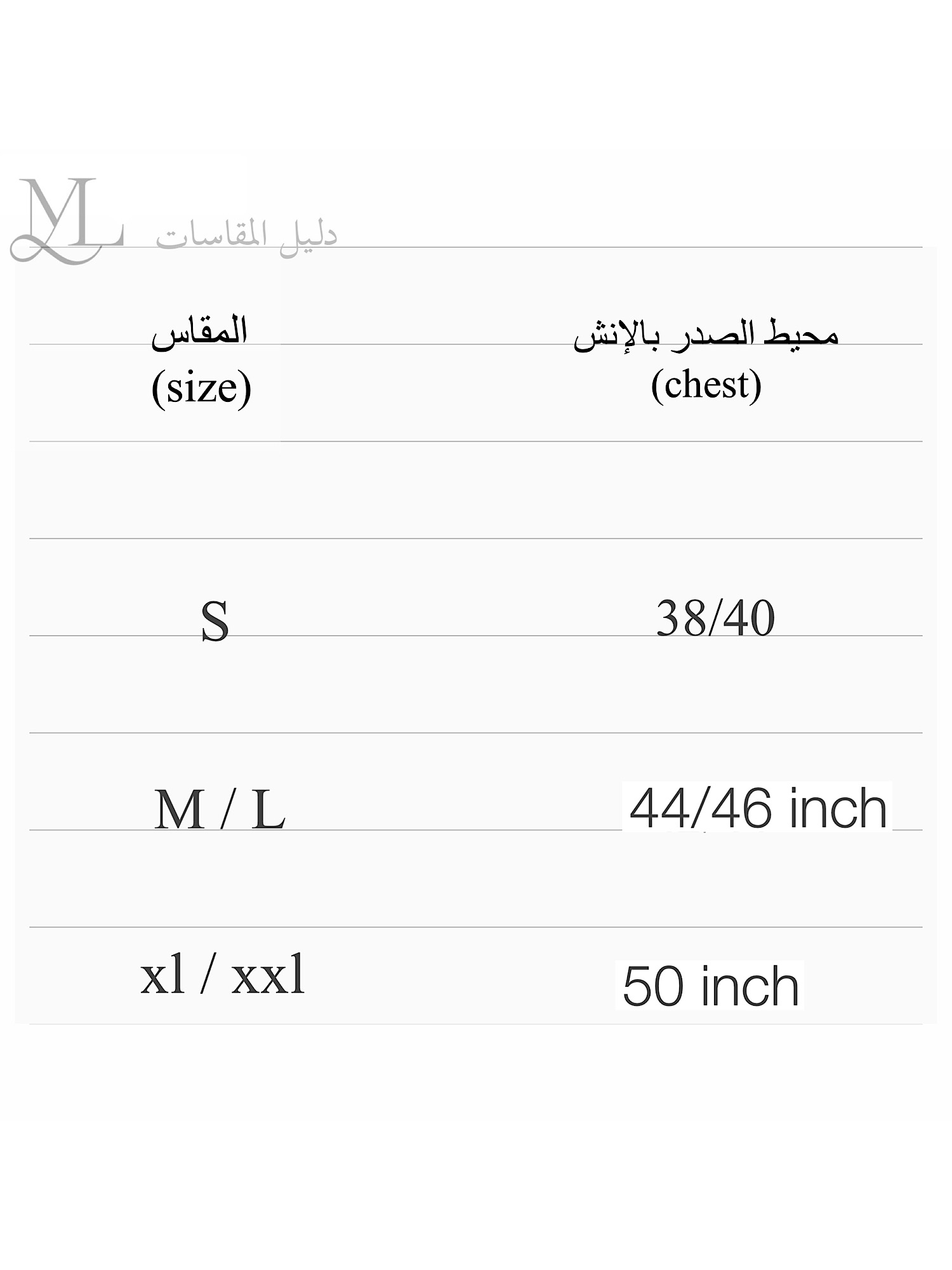 دليل المقاسات